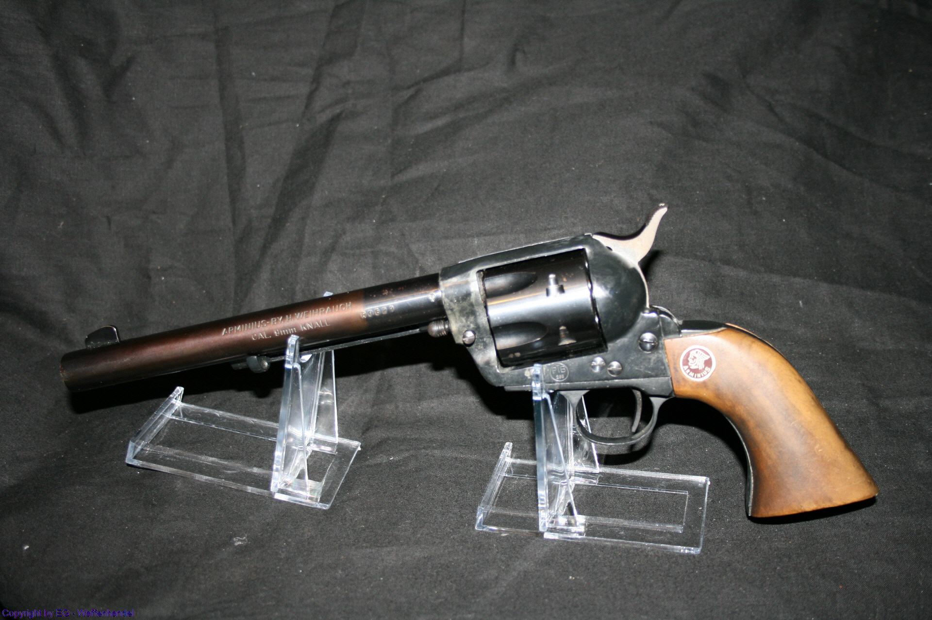 Weihrauch Arminius Western Six.Shooter, 6 Zoll Lauf, 9 mm Knall, Alle Funktions- und Schlossteile aus Stahl, Trommel, Hahn, Lauf, Stoßboden, Patronenausstoßer, Abzug usw. PTB Nr. 265