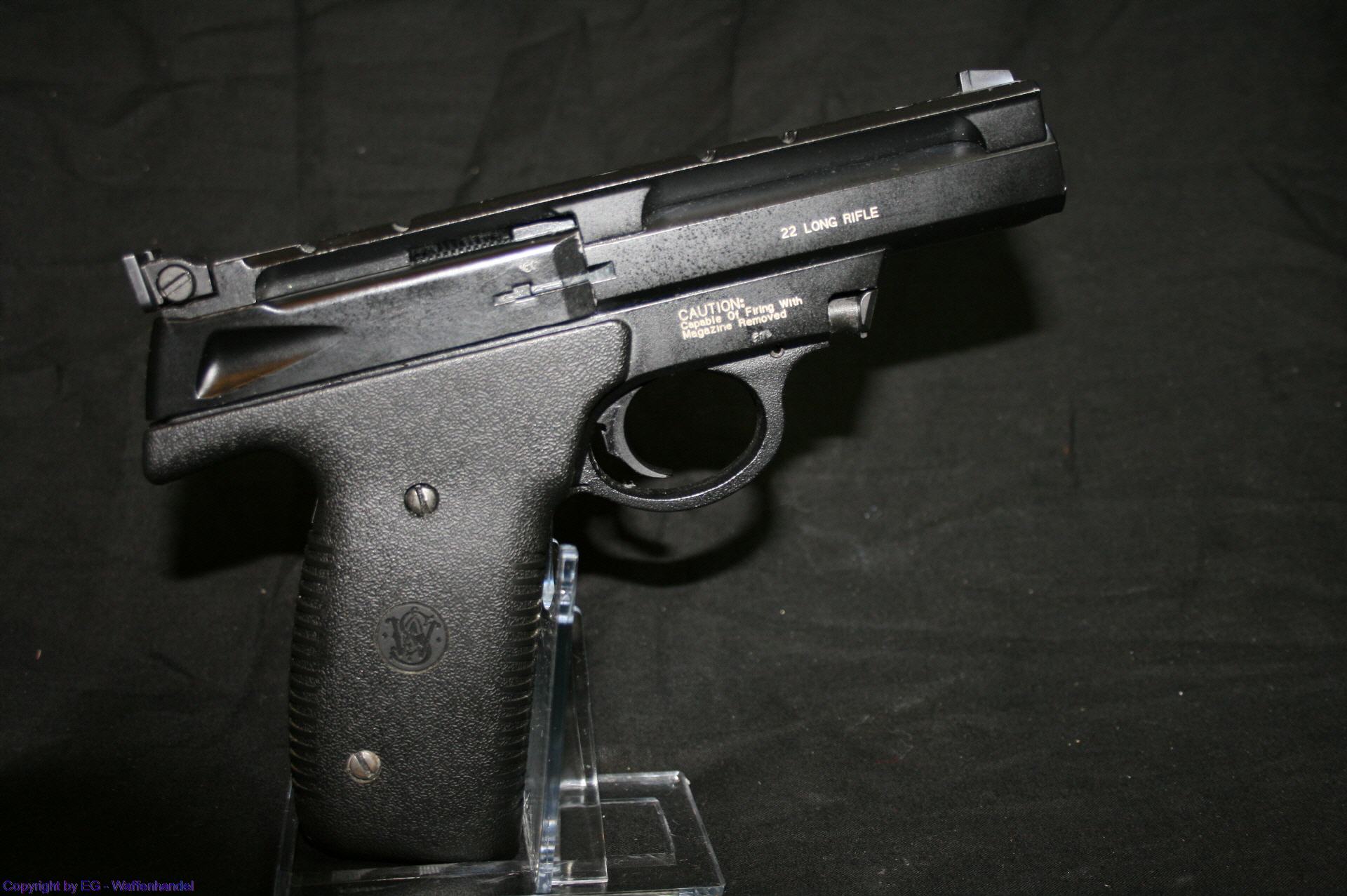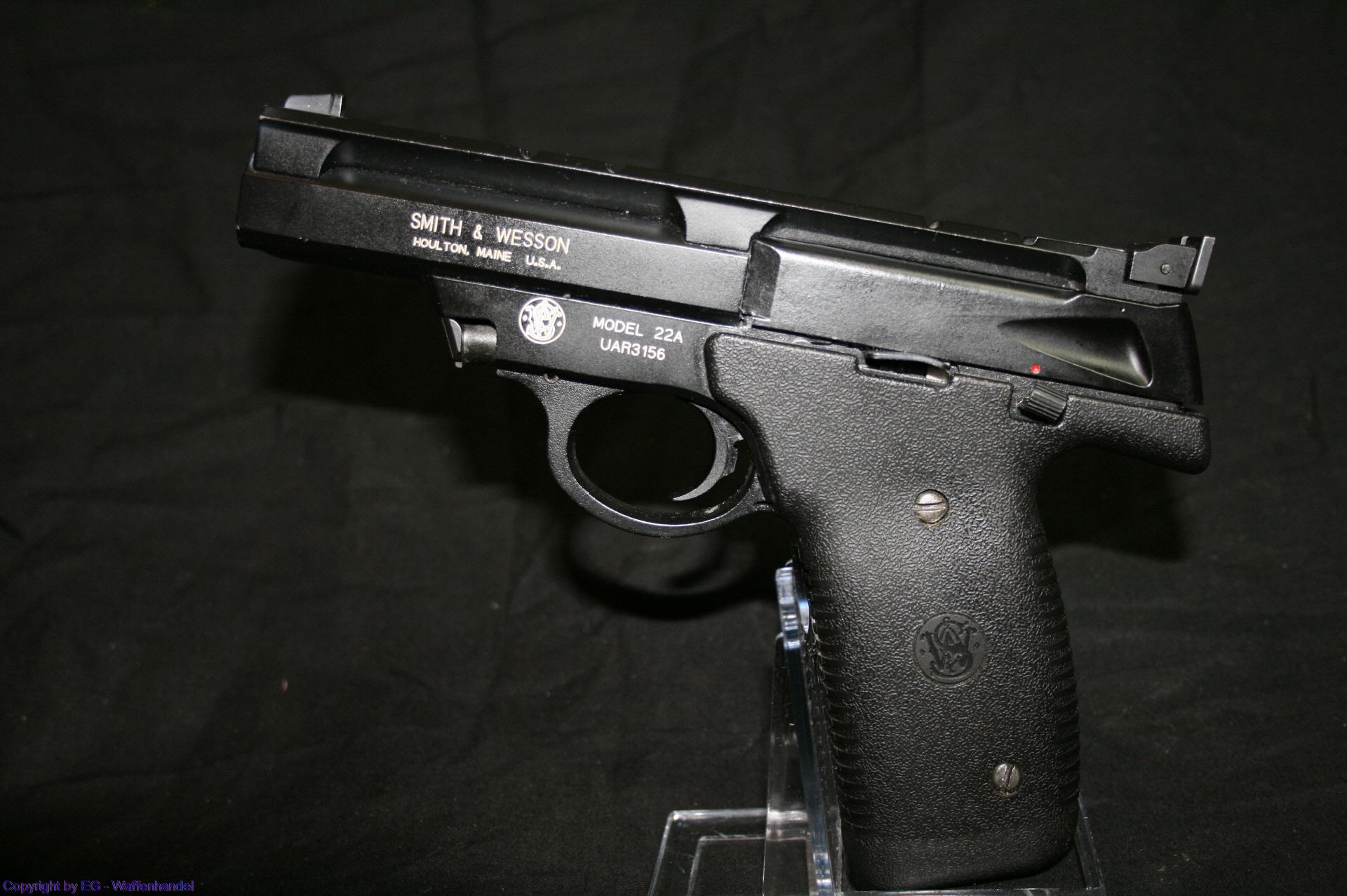 Smith & Wesson, Mod. 22 A, Kaliber: .22lfb, Lauflänge: 102 mm, Gesamtlänge: 200 mm |