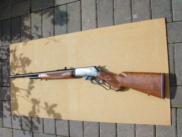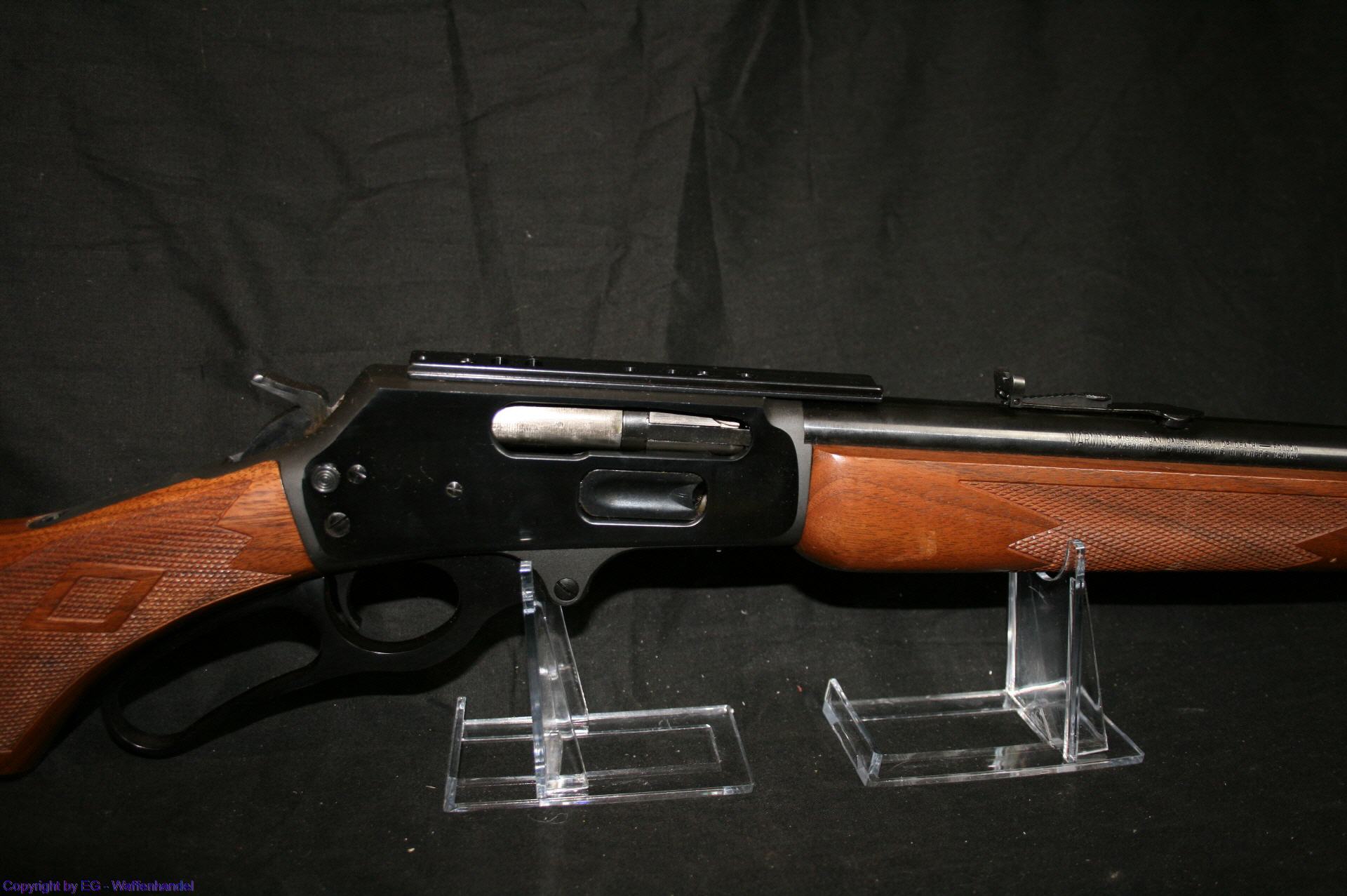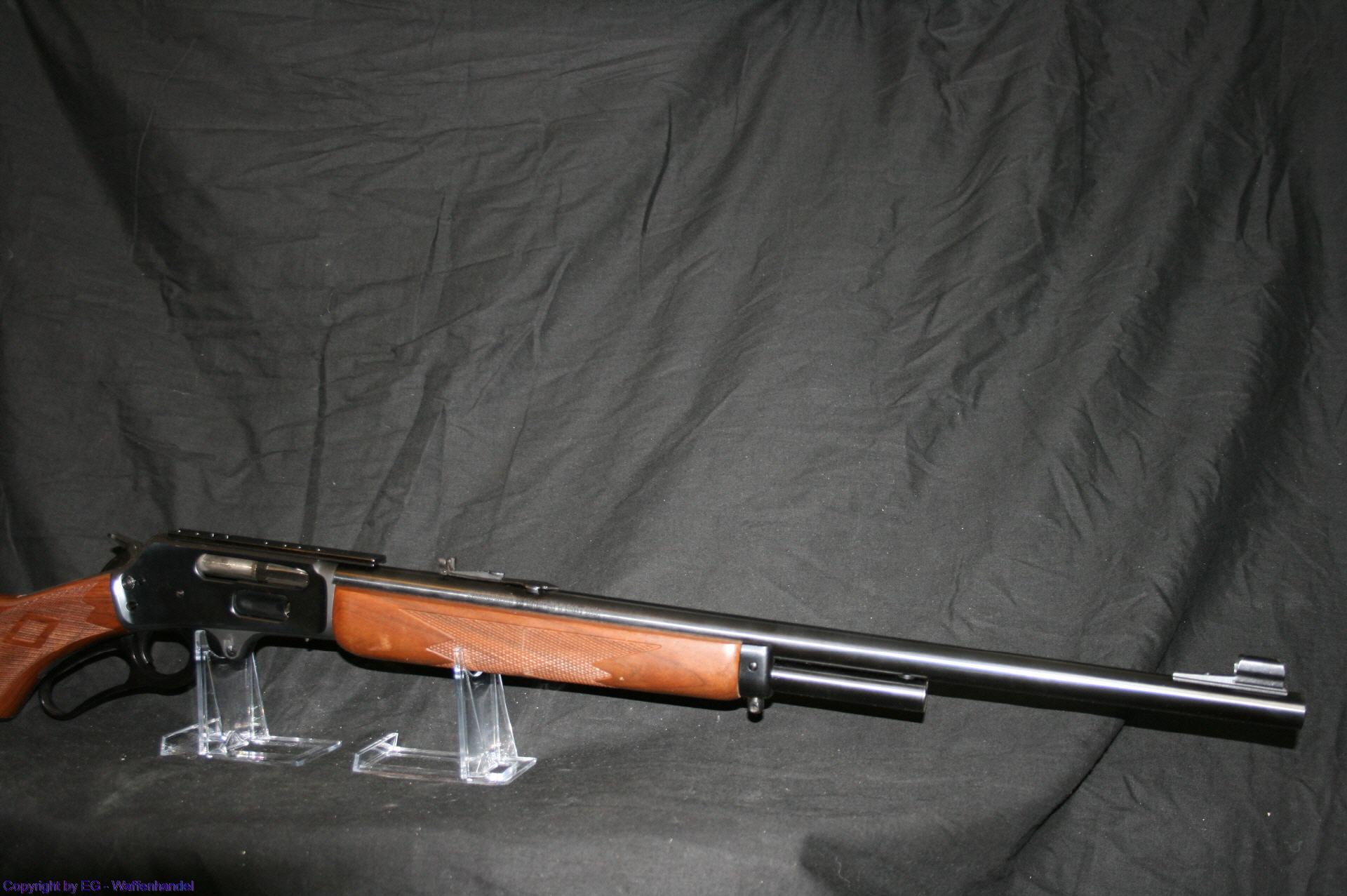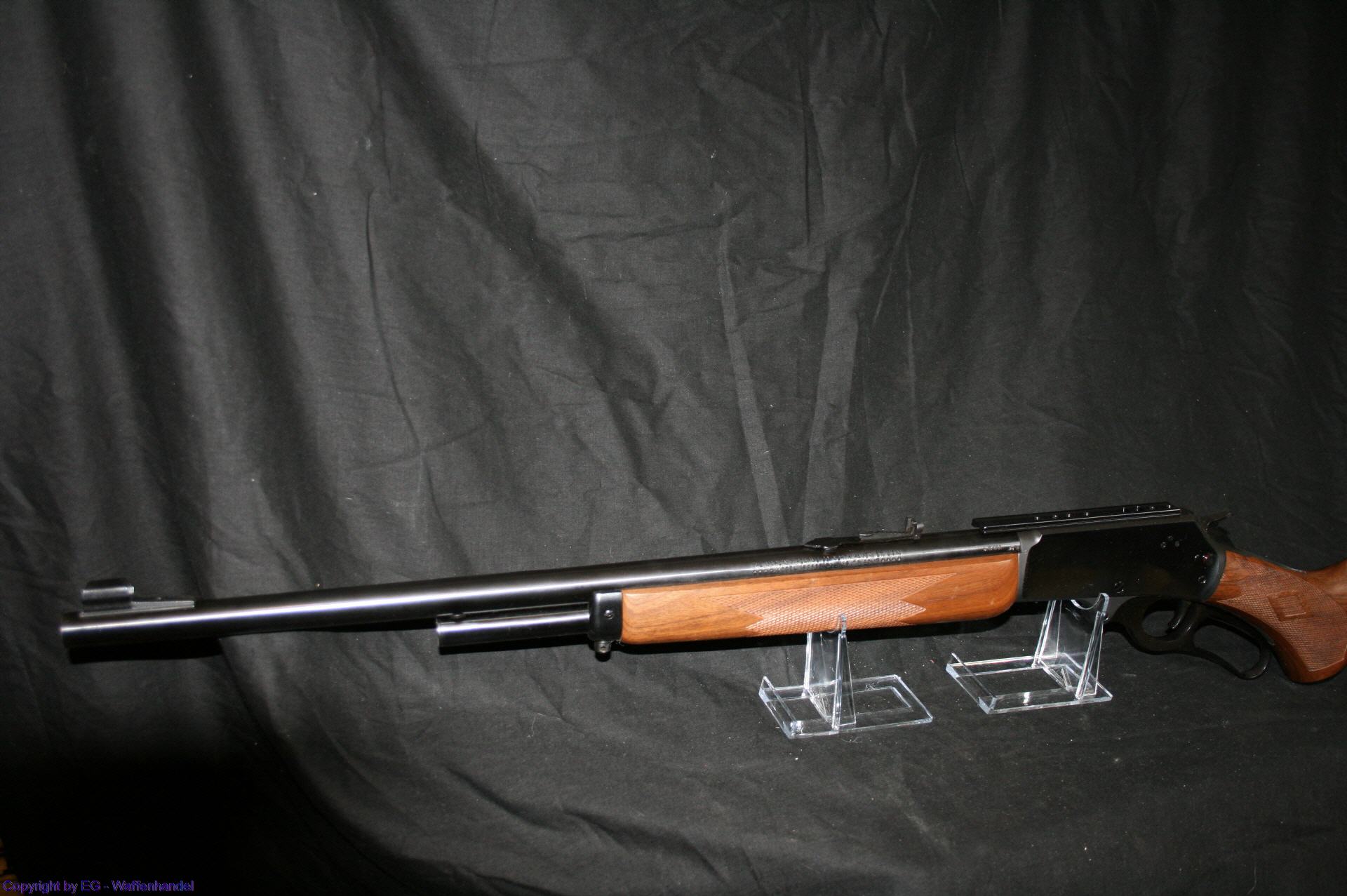 Marlin Modell 1895 SS, Kaliber .45/70 Gov., 4 - Schuß Magazin, Nussbaumschaft mit Fischhaut, Gummischaftkappe, Lauflänge: 55 cm, Gesamtlänge: 102 cm, Gewicht: 3,2 kg |