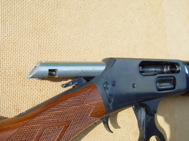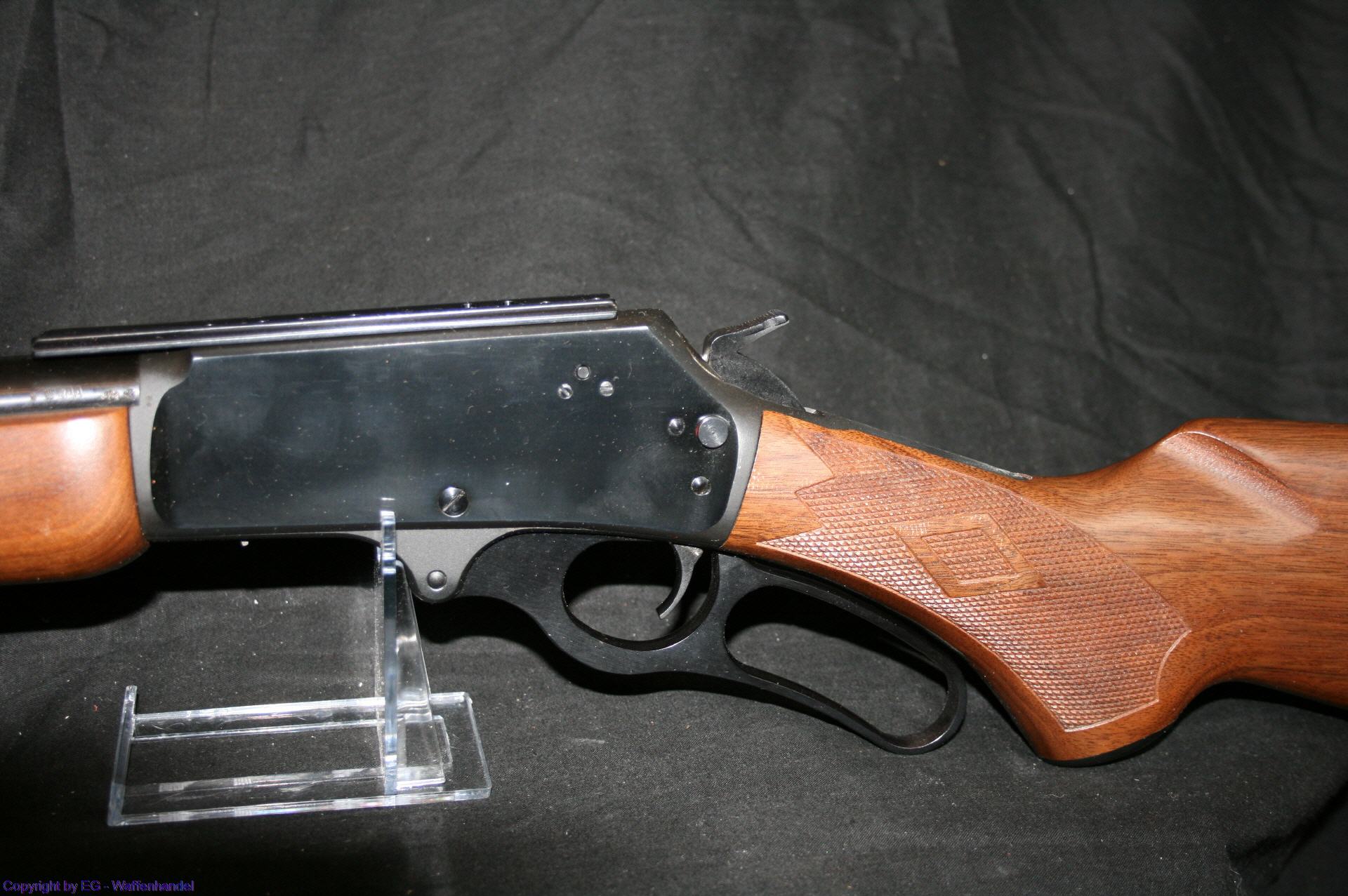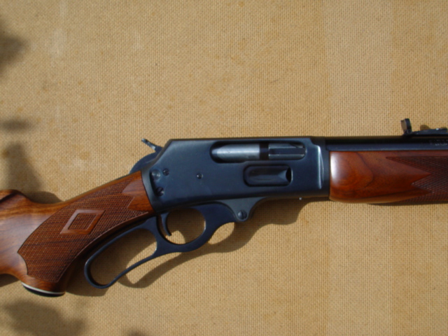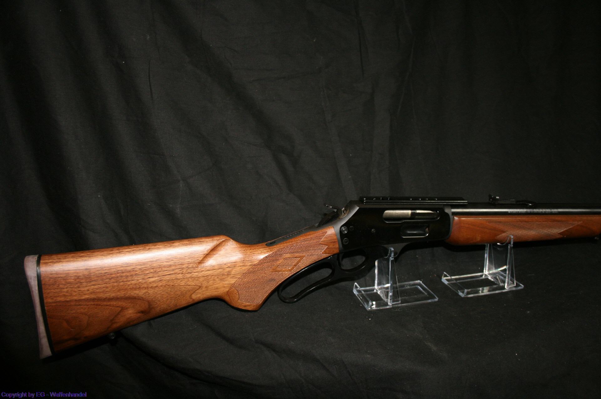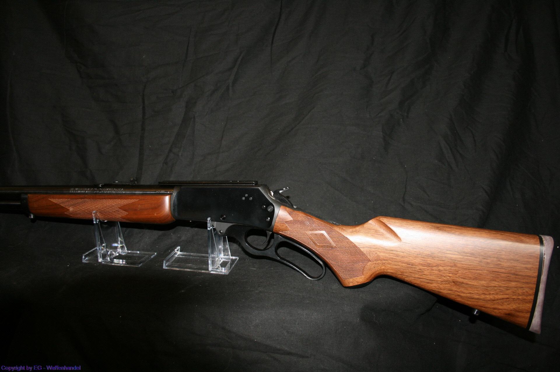 Marlin Modell 1895 SS, Kaliber .45/70 Gov., 4 - Schuß Magazin, Nussbaumschaft mit Fischhaut, Gummischaftkappe, Lauflänge: 55 cm, Gesamtlänge: 102 cm, Gewicht: 3,2 kg |