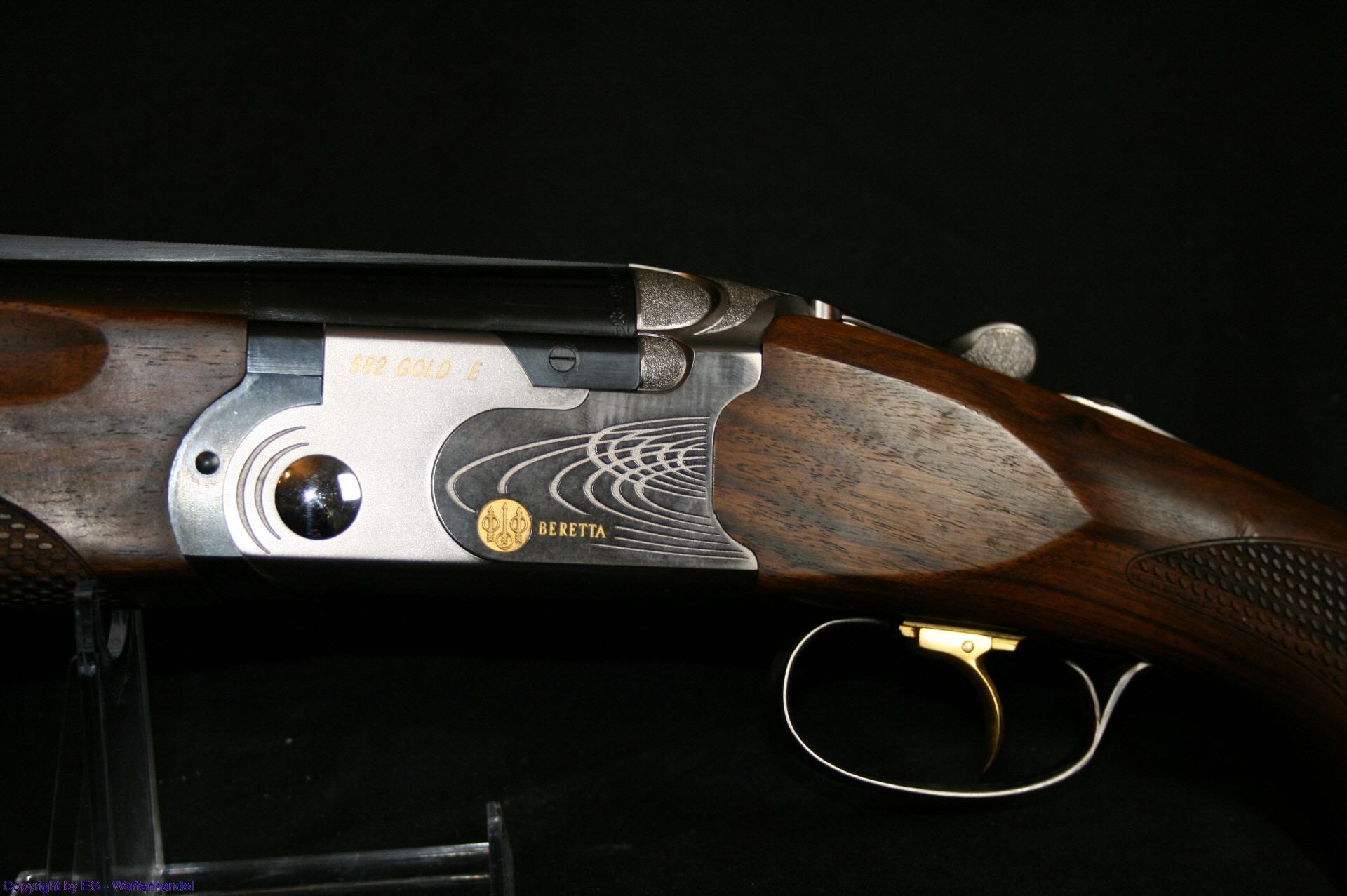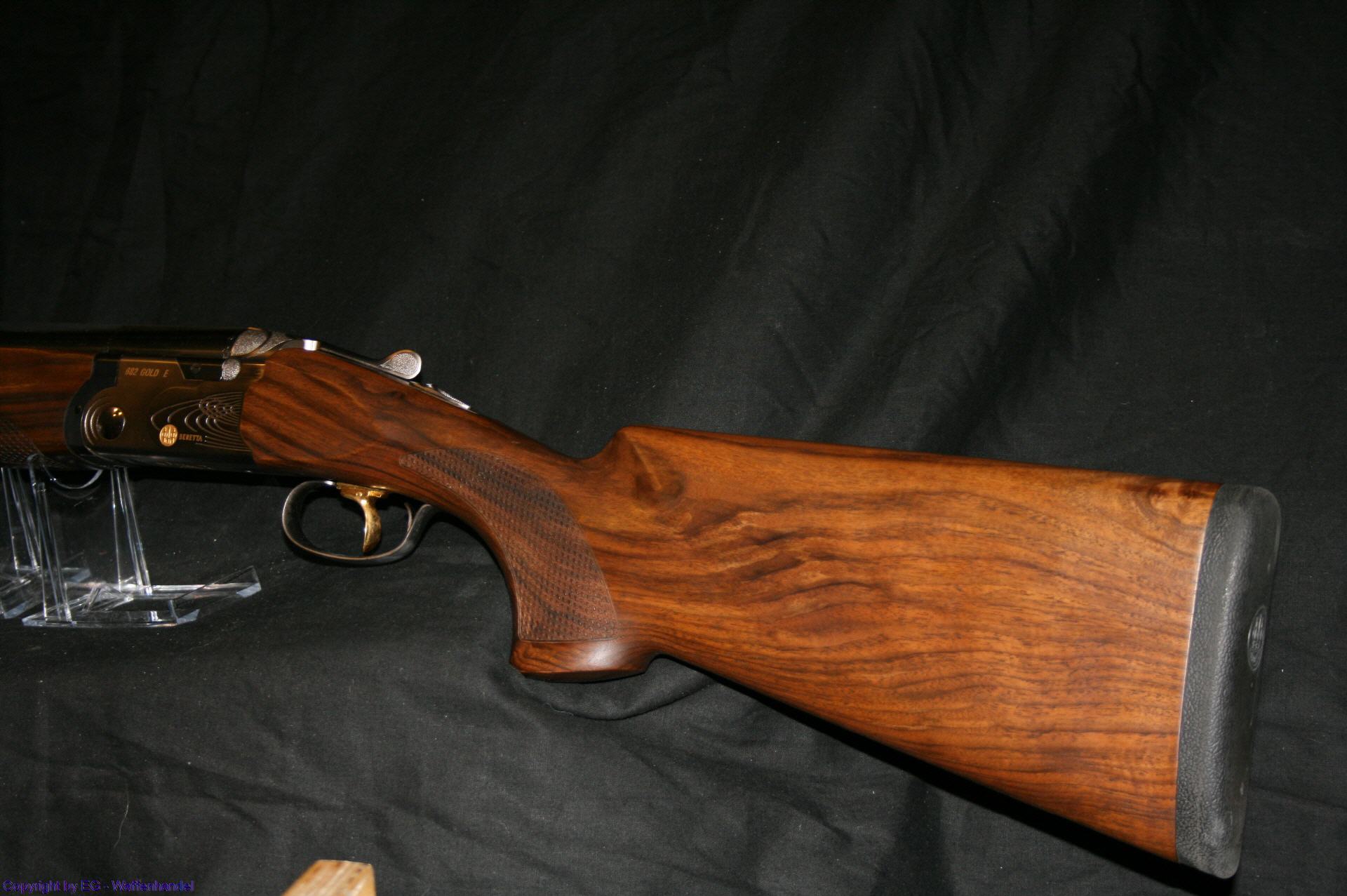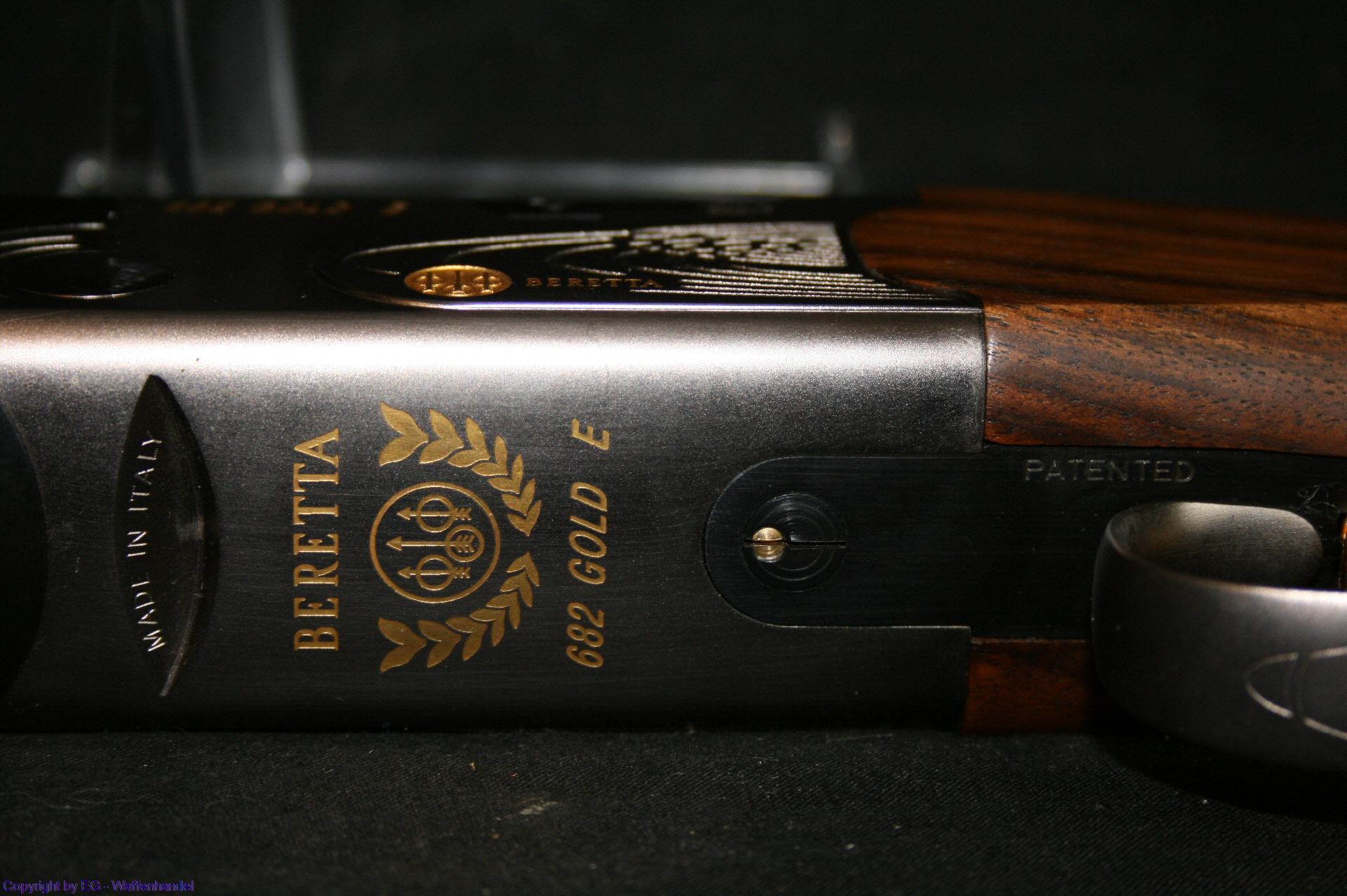 Beretta 682 Gold E Trap, Kaliber: 12/70, Choke: 3/4" und 1/1" Zoll, LL: 76 cm, 10mm Laufschiene, Einabzug, Ejektor, Ölgeschliffener Nussbaumschaft mit seidenglänzenden Finish. |